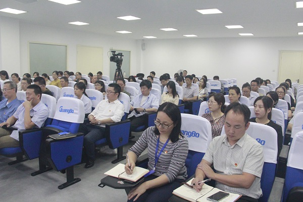 On the morning of September 30, on the memorial day of Chinese martyrs, the demonstration party course of "knowing the party history and being a Guangbo person in a new era" was held in the digital training hall of Guangbo (Ningbo) Industrial Park, and comrade Shu Yueping, deputy secretary of the Party committee of Guangbo Group, gave a lecture in person.