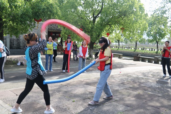 After visiting Maoxin village, according to the activity arrangement, 36 Youth League members were divided into four groups and played a series of exciting games in the form of team battle."Blind fight", "a circle to the end", "jump rope", "hand and foot", one by one, Guangbo young people became more familiar with each other, but also mobilized the competitive spirit of each group. Even under the high temperature, they were determined to win the first place in the final "brand tearing war".In the five minutes of you come and I go, they all try their best to show the fighting posture and youth color of Guangbo youth. Finally, the blue team won the victory.