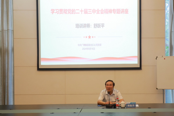 On August 16th, in the multifunctional hall of Guangbo Group, Shu Yueping, deputy secretary of the Party committee, gave a vivid and profound party lecture to party members on the theme of "deeply studying and implementing the spirit of the Third Plenary Session of the 20th Central Committee of the Communist Party of China".