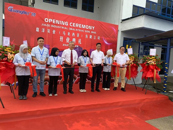 On March 28th, Guangbo Group held a grand ribbon cutting ceremony at its new factory in Penang, Malaysia, marking the official opening of the group's third overseas production base. General Manager Wang Junping personally attended the ribbon cutting ceremony and delivered a speech.