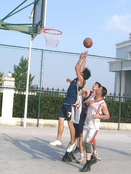聽到哨聲一響,裁判一拋球,只見兩隊隊長猛力起跳搶球,對方球員搶到球后迅速閃過我隊防守隊員,首先進了一球,但我們的隊員也不甘落后,幾分鐘后隊長王芳一個漂亮的妙傳,投球手迅速接球、騰跳、投籃。球好像要跟我們開玩笑,在網(wǎng)框上繞圈后終于聽話的進了籃框,引來了場上觀眾的一陣喝彩場。本次比賽就這樣在雙方的你追我趕中拉開了序幕,我隊也有驚無險的迎來了本次比賽的第一個球。整場比賽雙方有攻有守,打得難分難解。中場休息,我隊以44:36的比分暫時領先,下半場開始后,對方球隊開始發(fā)力,一步步的追趕比分,終于在最后一節(jié),比分被對方反超,最終以8分的差距輸給了對方。