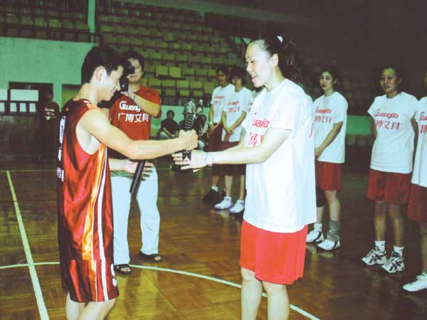 當天,在八一廣博文具女籃冠名簽約儀式結(jié)束后,八一女籃的姑娘們便在自家的訓練營里迎接遠道而來的球迷們,同他們一起度過了一個難忘的下午。雙方互贈禮品后,八一廣博文具女籃的姑娘們便同娘家球隊來了個友誼賽。為了表現(xiàn)一家人的概念,球技高超的女籃姑娘們照顧球迷們的業(yè)余水準,重新規(guī)定了本場比賽的規(guī)則。這規(guī)則一公布不禁讓球迷們笑開了花,原來這別出心裁的規(guī)則要求女籃姑娘們不能在籃下投球,三分球投中也只能按兩分算。
