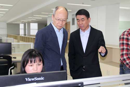 胡軍書記一行在參觀了公司展示中心了解廣博發(fā)展歷程、主要產(chǎn)業(yè)等情況后,特意到公司全球淘跨境電商平臺(tái)實(shí)在參觀考察,深入了解廣博跨界運(yùn)行互聯(lián)網(wǎng)+的進(jìn)程。