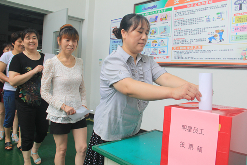 本次投票活動以“全員參與,民主選舉”為基本原則,通過現(xiàn)場投票、計票的方式來選舉產(chǎn)生各個車間的明星班組長和明星員工,拿到選票的員工們可以根據(jù)自己的判斷和意愿來決定投票對象,最終獲得明星班組長、明星員工稱號的員工們將獲得集團(tuán)提供的現(xiàn)金獎勵。
