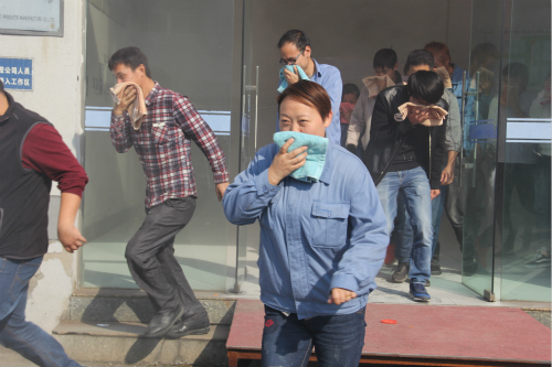為了讓大家能親身體驗逃生現(xiàn)場,公司組織了參訓(xùn)人員進行了模擬逃生演習(xí),在這一環(huán)節(jié)中,隨著一股“濃煙”彌漫開來,只見員工代表們用毛巾捂住口鼻,在消防官兵的指導(dǎo)下,沿著指定樓道在“滾滾濃煙”中有序、安全地了撤離了“火災(zāi)現(xiàn)場”。