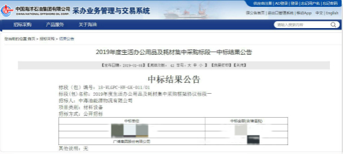 這其中就包括了“中海油2019年度生活辦公用品及耗材集中采購(gòu)”項(xiàng)目,“浙江吉利控股集團(tuán)2019-2020年辦公用品集中采購(gòu)”項(xiàng)目,“徽采商城第七批入圍供應(yīng)商公開(kāi)招標(biāo)”項(xiàng)目以及“貴州省省級(jí)單位政府采購(gòu)辦公用品類供應(yīng)商遴選入庫(kù)”項(xiàng)目。