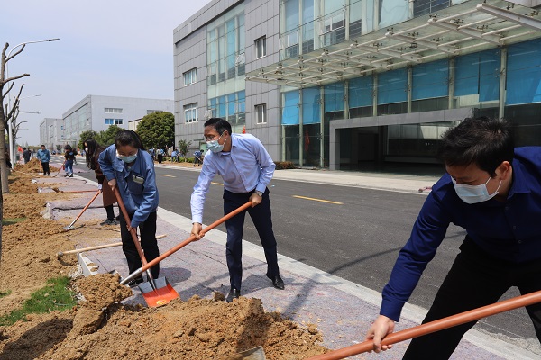 挖坑、搬運、填土……火熱的勞動現(xiàn)場成為春風(fēng)暖陽下一道美麗的風(fēng)景,并為公司增添了生機盎然。在黨委書記王利平帶領(lǐng)下,大家勞動精神飽滿,氣氛熱火朝天,最后還紛紛拿出手機與自己的“戰(zhàn)友”合影留念。