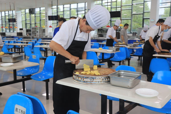 切土豆絲、紅燒魚、松鼠桂魚……2023年廣博集團(tuán)第一屆廚師技能比武在廣博工業(yè)園大食堂舉行,大廚們會聚一堂,比拼廚藝。