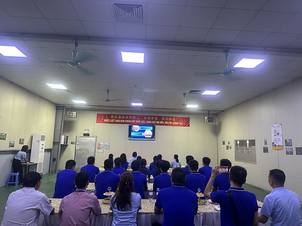 在生產(chǎn)基地,考察團(tuán)深入車間一線,詳細(xì)了解了各條生產(chǎn)線的運(yùn)行情況,并深刻感受到作為海外生產(chǎn)基地在面對(duì)諸多國(guó)內(nèi)不曾遇到的挑戰(zhàn)時(shí)所展現(xiàn)出的頑強(qiáng)毅力和卓越管理能力。隨后基地總經(jīng)理李明東、廠長(zhǎng)王飛云接待了考察團(tuán)一行,并以成功企業(yè)離不開團(tuán)隊(duì)的凝聚力與執(zhí)行力為主題,做了詳細(xì)的介紹。隨后大家觀看了越南生產(chǎn)基地專輯制作的VCR《因?yàn)橛心恪?,以廣博集團(tuán)30周年歌曲為背景,敘述了基地6年來(lái)不斷成長(zhǎng),追求卓越的發(fā)展歷程。聆聽完講解,觀看完視頻,在場(chǎng)的先進(jìn)工作者無(wú)不觸動(dòng),他們紛紛表示要從四個(gè)方面認(rèn)真學(xué)習(xí),一是學(xué)習(xí)越南基地的堅(jiān)持與擔(dān)當(dāng);二是學(xué)習(xí)越南基地的開拓與創(chuàng)新;三是學(xué)習(xí)越南基地的生產(chǎn)現(xiàn)場(chǎng)規(guī)范標(biāo)準(zhǔn);四是學(xué)習(xí)越南基地的文化融合與凝聚。