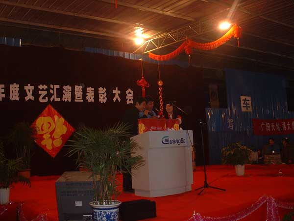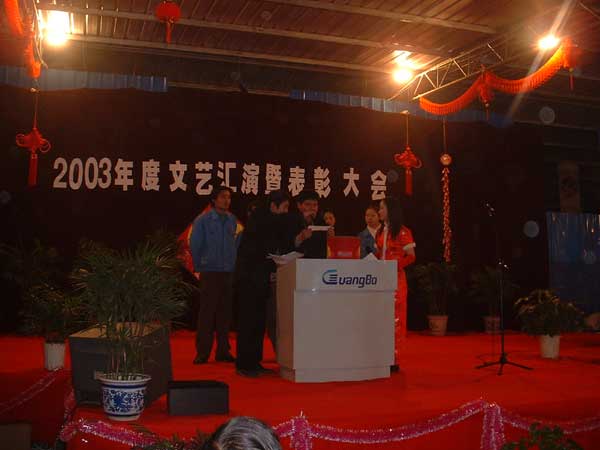 靈羊辭舊歲,金猴鬧新春。2月19日,廣博集團(tuán)公司組織了2003年度文藝匯演暨表彰大會,這是集團(tuán)公司給公司全體員工的一份新年大禮,會場四周張燈結(jié)彩,獎品整整圍了舞臺一圈,會場是一片喜慶……