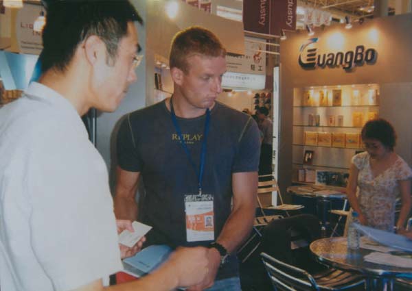 第六屆浙江省投資貿(mào)易洽談會(huì),第三屆中國(guó)日用消費(fèi)品博覽會(huì)在寧波隆重舉行。廣博生產(chǎn)的相冊(cè)、簿冊(cè)、以及新推出的200萬-300萬像素的數(shù)碼相機(jī)深受外商的鐘愛。圖為一名外商正在與我公司代表洽談業(yè)務(wù)。