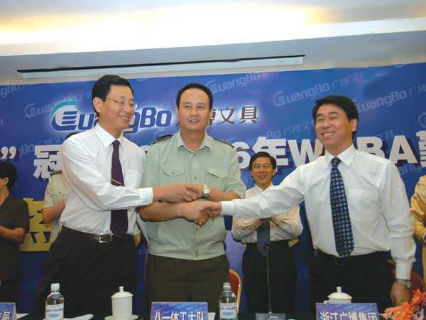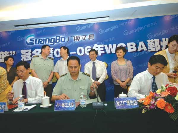 8月5日,解放軍八一體工大隊和浙江廣博集團(tuán)的“八一廣博文具女籃”冠名簽字儀式在北京舉行。當(dāng)八一體工大隊朱家志隊長與廣博文具的掌門人王利平董事長的手緊握在一起的時候,八一廣博文具女子籃球隊將與廣博集團(tuán)一道開始新一輪的征程。