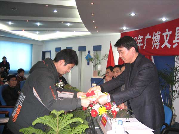 2月5日,“廣博集團2006年度國內營銷工作會議”在國內市場營銷部經(jīng)理張華的主持下于在集團公司總部召開。集團公司董事長王利平、總經(jīng)理王君平、內銷部經(jīng)理張華、龔達榮等領導以及各個省市分公司、辦事處部門經(jīng)理參加此次會議。
